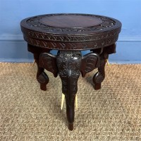 A small Anglo Indian carved circular elephant occasional table Bombay presidency circa 1890
