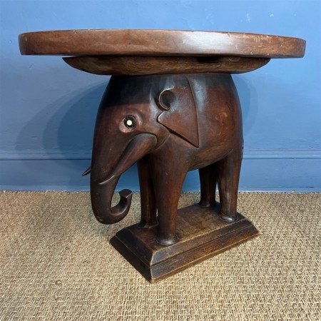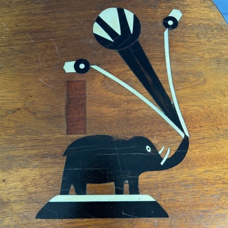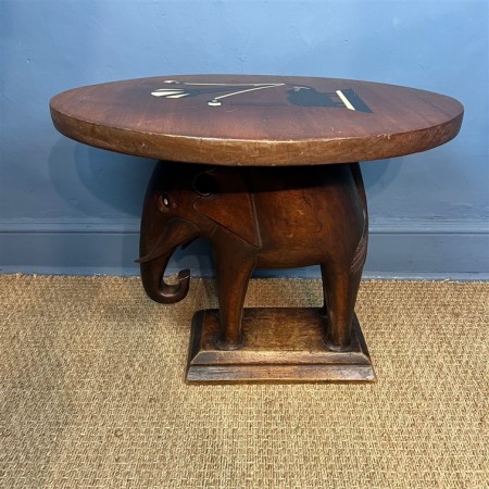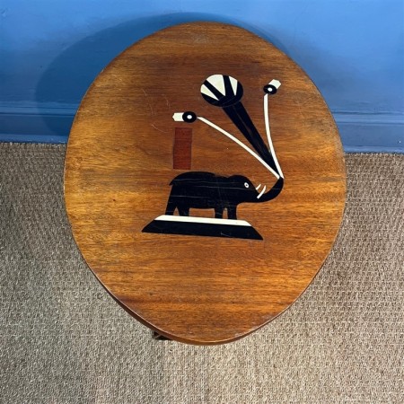 A West African oval topped elephant table from Ghana or Gold Coast circa 1930 the top with unusual inlay in bone and ebony