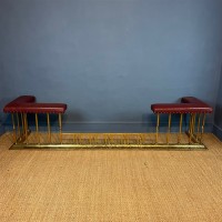 A rare William IV brass curved kerb fender circa 1835 beautifully pierced to the frieze with 7 cast paw feet to the curved scrolled fronts below.