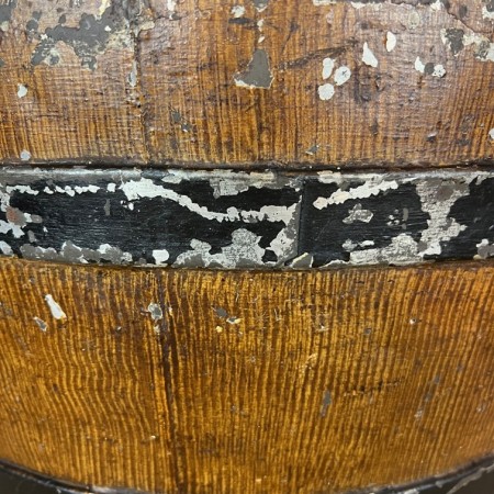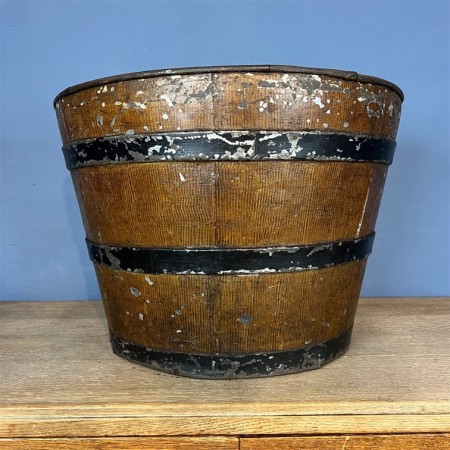A mid 19th century Country House circular toleware log basket painted to simulate wood with iron bands.
