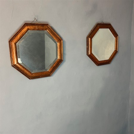 A pair of late Victorian oak octagonal wall mirrors Circa 1900 with the original bevelled glass plates.