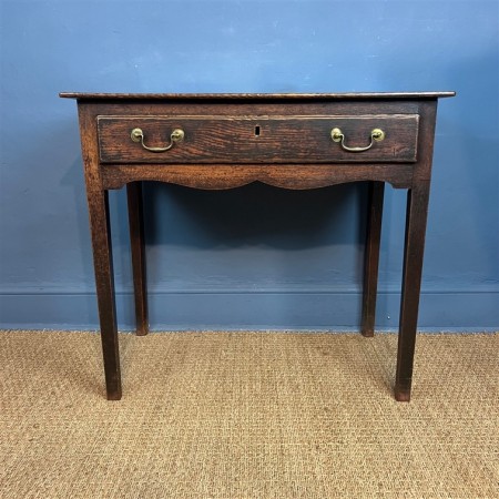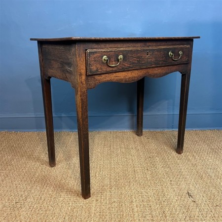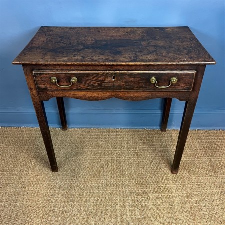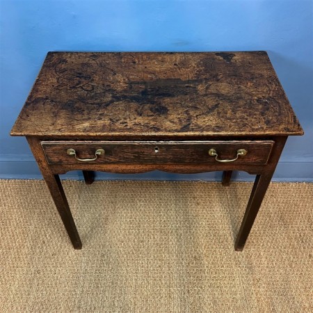 A George 111 oak side table circa 1800 with a single frieze drawer and rich figured colour and patina throughout.