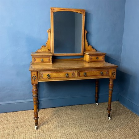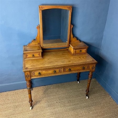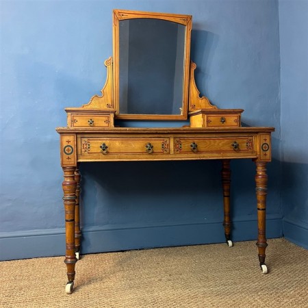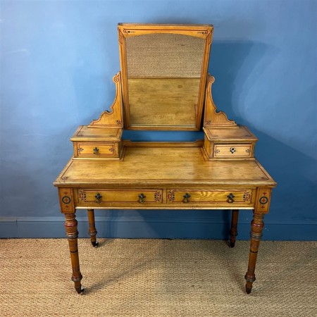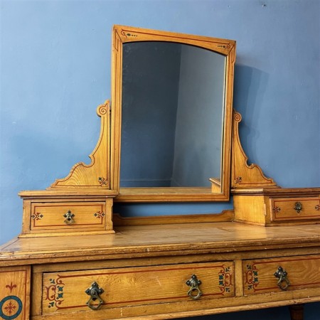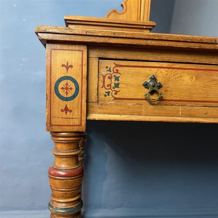 A Gothic Reform ash dressing table circa 1870 with painted decoration in excellent original condition.