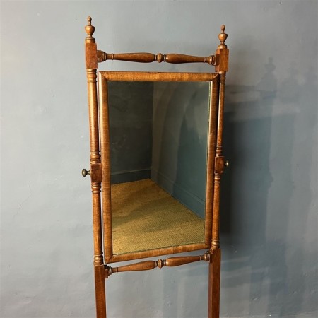 A Scottish Regency mahogany Cheval Mirror circa 1830 of diminutive proportions in lovely soft mahogany with the original mercury plate. The back with the indistinct original Dundee makers label.