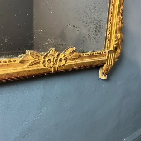 A late 18th century French gilt wood wall mirror circa 1800 retaining its original gilding and mercury plate.