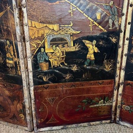 An 18th century Dutch leather painted and gilt chinoiserie 4 fold screen in lovely original condition.