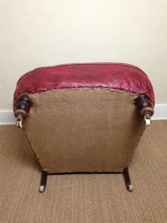 A big comfortable Victorian leather club armchair in the original red morocco leathet in lovely soft faded condition.