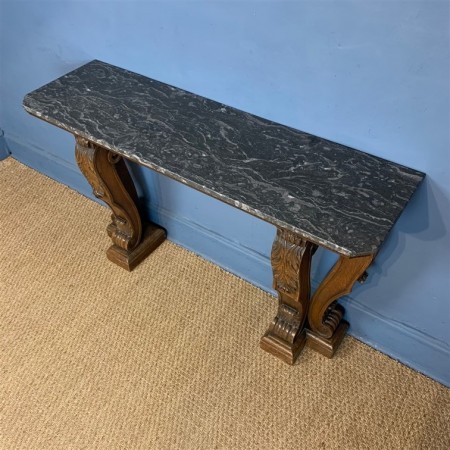 A William IV Scottish Larchwood console table in Kentian style with original shaped grey marble top circa 1835
