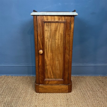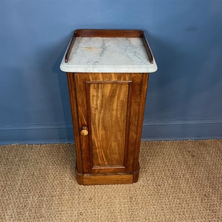 A mid 19th century faded mahogany bedside table circa 1850 with original White Carrera marble top and three-quarter gallery.