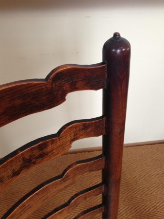 A good harlequin set of 8 late 18th c Ash North Country ladderback chairs c 1800
