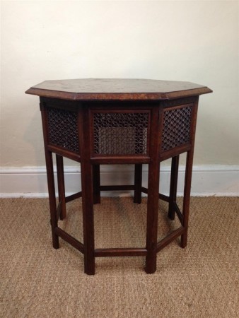 A large Northern Indian brass and ebony inlaid octagonal table c 1900